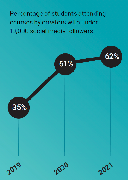 This graph shows an increase in students attending courses by creators with less than 10,000 social media followers. So it is possible, and I will go more into what it is you need to focus on when you have less than 10,000 social media followers.
